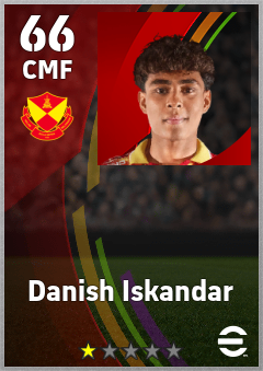 . Danish Iskandar is a Center Midfielder footballer from Malaysia who plays for Selangor Fc in eFootball 2026.