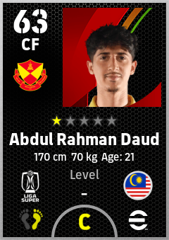 . Abdul Rahman Daud is a Center Forward footballer from Malaysia who plays for Selangor Fc in eFootball 2026.