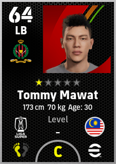 . Tommy Mawat is a Left Back footballer from Malaysia who plays for Dpmm Fc in eFootball 2026.