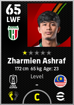 . Zharmien Ashraf is a Left Wing Forward footballer from Malaysia who plays for Kuching City Fc in eFootball 2026.