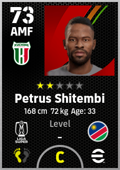 . Petrus Shitembi is a Attacking Midfielder footballer from Namibia who plays for Kuching City Fc in eFootball 2026.