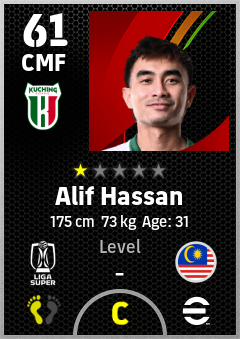 . Alif Hassan is a Center Midfielder footballer from Malaysia who plays for Kuching City Fc in eFootball 2026.