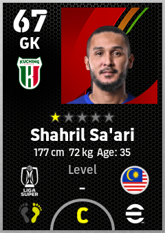 . Shahril Sa'ari is a Goalkeeper footballer from Malaysia who plays for Kuching City Fc in eFootball 2026.