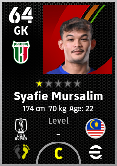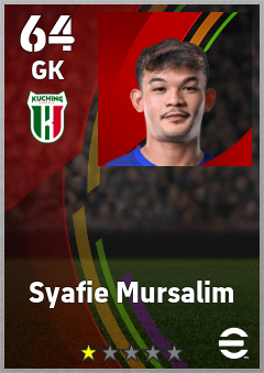. Syafie Mursalim is a Goalkeeper footballer from Malaysia who plays for Kuching City Fc in eFootball 2026.
