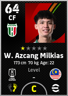 . W. Azcang Milkias is a Center Forward footballer from Malaysia who plays for Kuching City Fc in eFootball 2026.