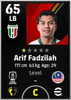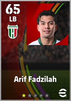 . Arif Fadzilah is a Left Back footballer from Malaysia who plays for Kuching City Fc in eFootball 2026.