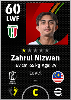 . Zahrul Nizwan is a Left Wing Forward footballer from Malaysia who plays for Kuching City Fc in eFootball 2026.