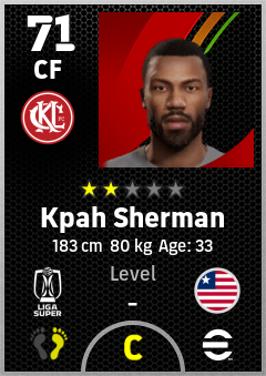 . Kpah Sherman is a Center Forward footballer from Liberia who plays for Kuala Lumpur City Fc in eFootball 2026.