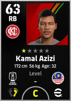 . Kamal Azizi is a Right Back footballer from Malaysia who plays for Kuala Lumpur City Fc in eFootball 2026.