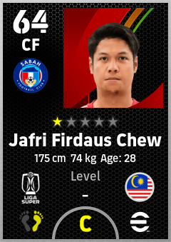. Jafri Firdaus Chew is a Center Forward footballer from Malaysia who plays for Sabah Fc in eFootball 2026.