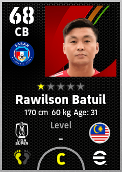 . Rawilson Batuil is a Center Back footballer from Malaysia who plays for Sabah Fc in eFootball 2026.