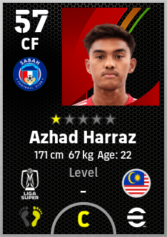 . Azhad Harraz is a Center Forward footballer from Malaysia who plays for Sabah Fc in eFootball 2026.