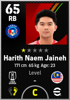 . Harith Naem Jaineh is a Right Back footballer from Malaysia who plays for Sabah Fc in eFootball 2026.