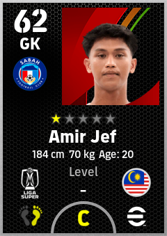 . Amir Jef is a Goalkeeper footballer from Malaysia who plays for Sabah Fc in eFootball 2026.