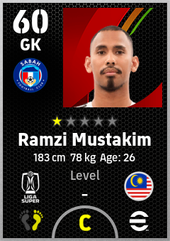. Ramzi Mustakim is a Goalkeeper footballer from Malaysia who plays for Sabah Fc in eFootball 2026.