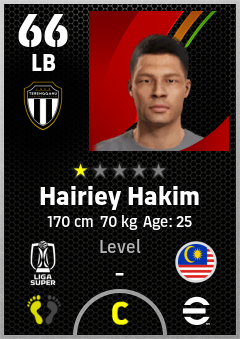 . Hairiey Hakim is a Left Back footballer from Malaysia who plays for Terengganu Fc in eFootball 2026.