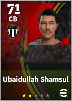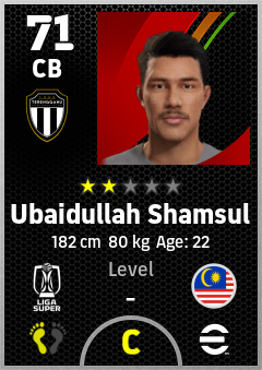 . Ubaidullah Shamsul is a Center Back footballer from Malaysia who plays for Terengganu Fc in eFootball 2026.