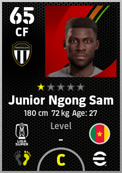 . Junior Ngong Sam is a Center Forward footballer from Cameroon who plays for Terengganu Fc in eFootball 2026.