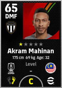 . Akram Mahinan is a Defensive Midfielder footballer from Malaysia who plays for Terengganu Fc in eFootball 2026.