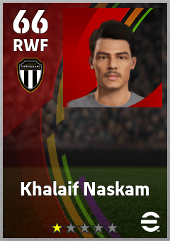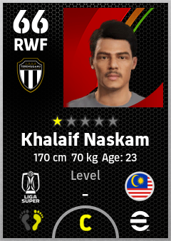 . Khalaif Naskam is a Right Wing Forward footballer from Malaysia who plays for Terengganu Fc in eFootball 2026.