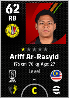. Ariff Ar-Rasyid is a Right Back footballer from Malaysia who plays for Negeri Sembilan Fc in eFootball 2026.