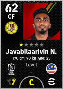 . Javabilaarivin N. is a Center Forward footballer from Malaysia who plays for Negeri Sembilan Fc in eFootball 2026.