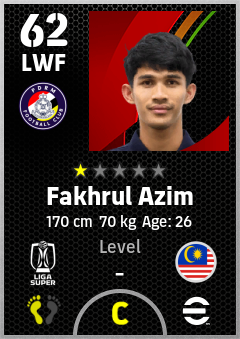 . Fakhrul Azim is a Left Wing Forward footballer from Malaysia who plays for Pdrm Fc in eFootball 2026.
