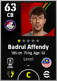 . Badrul Affendy is a Center Back footballer from Malaysia who plays for Pdrm Fc in eFootball 2026.