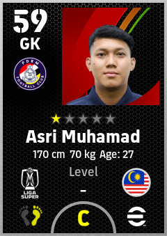 . Asri Muhamad is a Goalkeeper footballer from Malaysia who plays for Pdrm Fc in eFootball 2026.