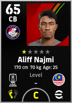 . Aliff Najmi is a Center Back footballer from Malaysia who plays for Pdrm Fc in eFootball 2026.