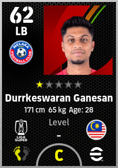 . Durrkeswaran Ganesan is a Left Back footballer from Malaysia who plays for Melaka Fc in eFootball 2026.