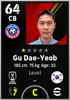 . Gu Dae-Yeob is a Center Back footballer from Korea Republic who plays for Melaka Fc in eFootball 2026.