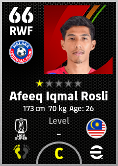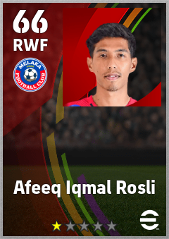 . Afeeq Iqmal Rosli is a Right Wing Forward footballer from Malaysia who plays for Melaka Fc in eFootball 2026.