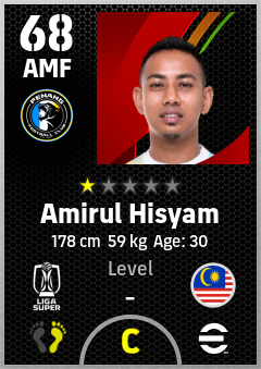 . Amirul Hisyam is a Attacking Midfielder footballer from Malaysia who plays for Penang Fc in eFootball 2026.
