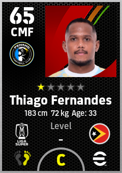 . Thiago Fernandes is a Center Midfielder footballer from Timor-Leste who plays for Penang Fc in eFootball 2026.