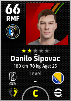 . Danilo Šipovac is a Right Midfielder footballer from Bosnia And Herzegovina who plays for Penang Fc in eFootball 2026.