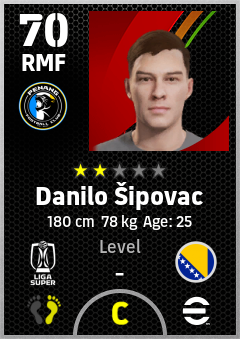 . Danilo Šipovac is a Right Midfielder footballer from Bosnia And Herzegovina who plays for Penang Fc in eFootball 2026.