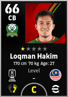 . Loqman Hakim is a Center Back footballer from Malaysia who plays for Imigresen Fc in eFootball 2026.