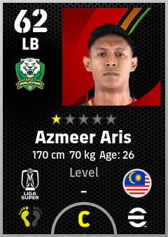 . Azmeer Aris is a Left Back footballer from Malaysia who plays for Imigresen Fc in eFootball 2026.