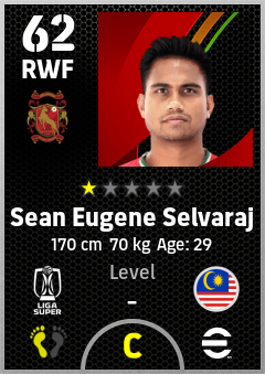 . Sean Eugene Selvaraj is a Right Wing Forward footballer from Malaysia who plays for Kelantan Trw Fc in eFootball 2026.