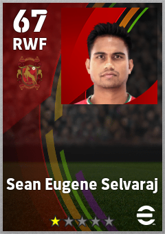 . Sean Eugene Selvaraj is a Right Wing Forward footballer from Malaysia who plays for Kelantan Trw Fc in eFootball 2026.