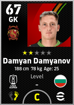. Damyan Damyanov is a Goalkeeper footballer from Bulgaria who plays for Kelantan Trw Fc in eFootball 2026.