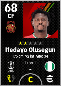 . Ifedayo Olusegun is a Center Forward footballer from Nigeria who plays for Kelantan Trw Fc in eFootball 2026.