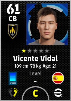 . Vicente Vidal is a Center Back footballer from Spain who plays for Albacete Bn in eFootball 2026.