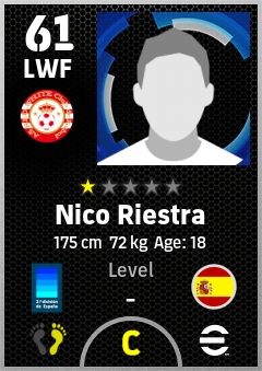 . Nico Riestra is a Left Wing Forward footballer from Spain who plays for Gijón Rb in eFootball 2026.