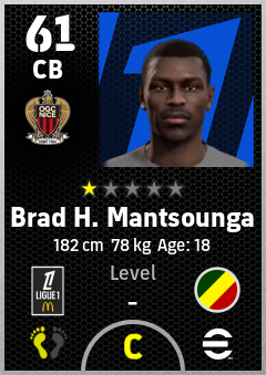 . Brad H. Mantsounga is a Center Back footballer from Congo who plays for Ogc Nice in eFootball 2026.