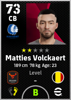 . Matties Volckaert is a Center Back footballer from Belgium who plays for Gent Bw in eFootball 2026.