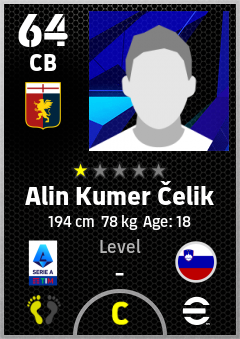 . Alin Kumer Čelik is a Center Back footballer from Slovenia who plays for Genova Rb in eFootball 2026.