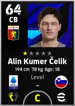 . Alin Kumer Čelik is a Center Back footballer from Slovenia who plays for Genova Rb in eFootball 2026.