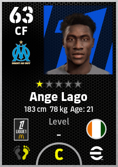 . Ange Lago is a Center Forward footballer from Côte D'ivoire who plays for Olympique De Marseille in eFootball 2026.